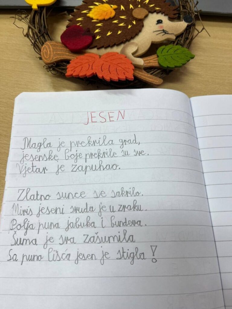 Danas smo u 2. i 4. razredu učili o jeseni na poseban način – djeca su donijela jesenske plodove, slagala od njih slike, a zatim stvarala rečenice, priče i pjesmice. Mali su pjesnici osjetili mirise i boje jeseni te ih pretočili u riječi. Na likovnom smo satovima slikali jesenske plodove i obogatili naše jesenske doživljaje bojama.